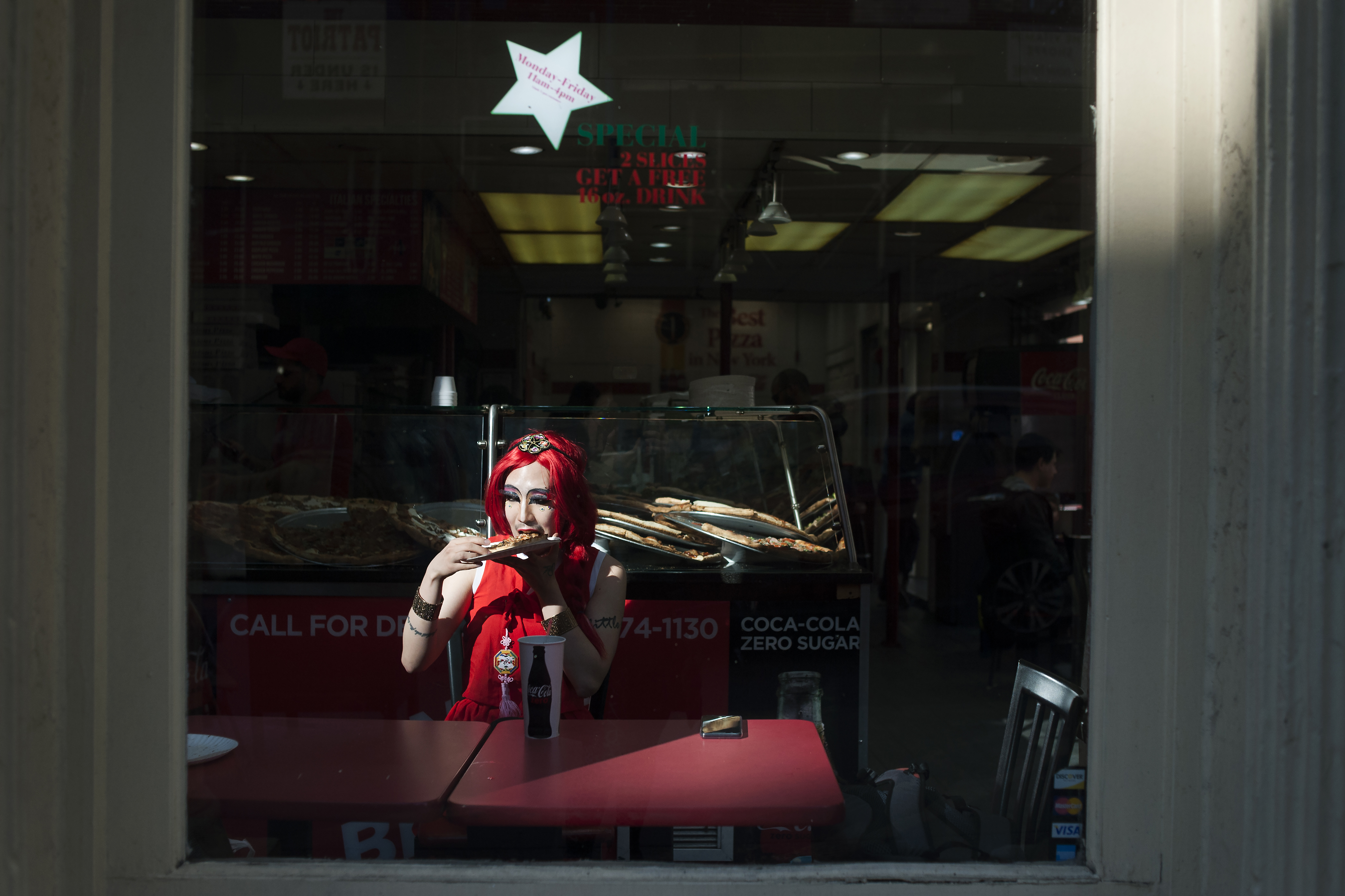 Heezy Yang stops by for a pizza Donna Bella Pizza in New York City in April 2018 before the inaugural KQTcon (Korean Queer & Trans Conference). Yang was invited as a guest artist from Seoul to speak about his experience and perform for the Korean American queer community. From ongoing project.